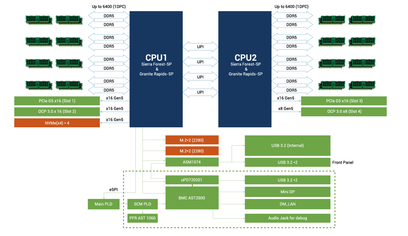 • 32x DIMM Sockets Support DDR5 ECC RDIMM
